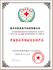 榮獲中國集成吊頂十大知名品牌