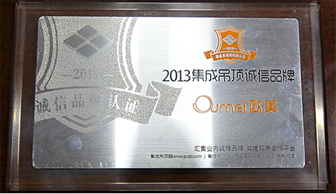 歐美集成吊頂榮獲2013集成吊頂誠信品牌